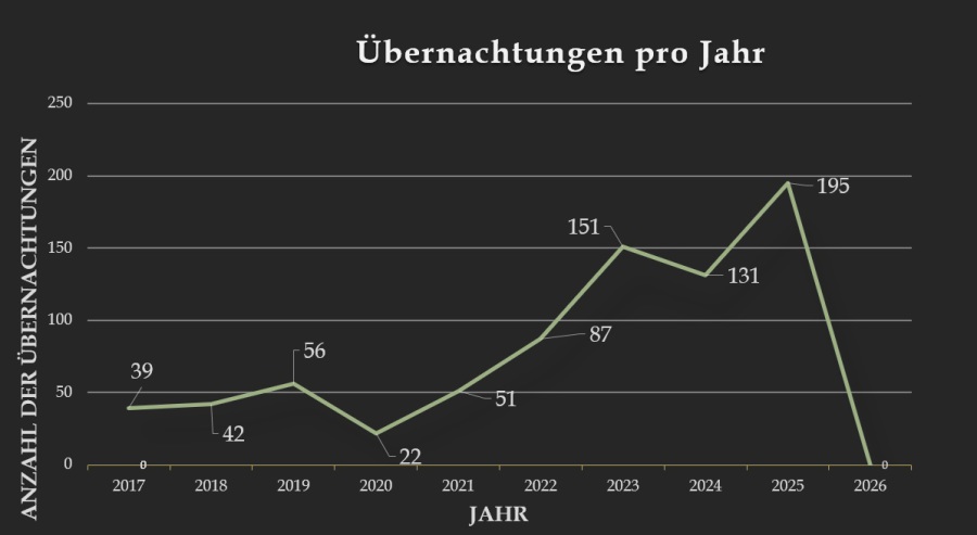 Wir hoffen es werden noch viele Übernachtungen dazu kommen.