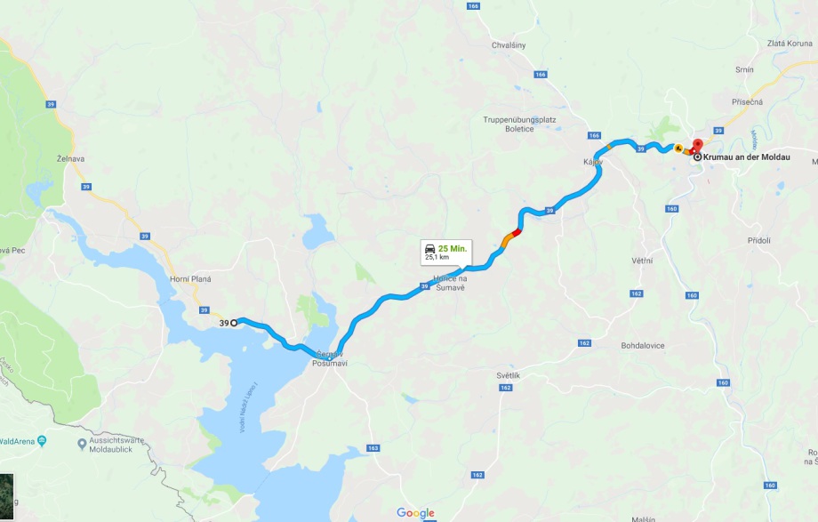 Zu deutsch wird die Stadt Krumau an der Moldau genannt.