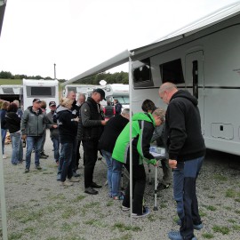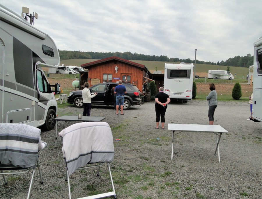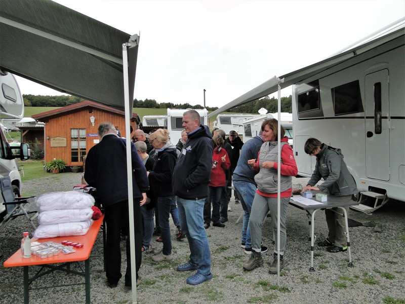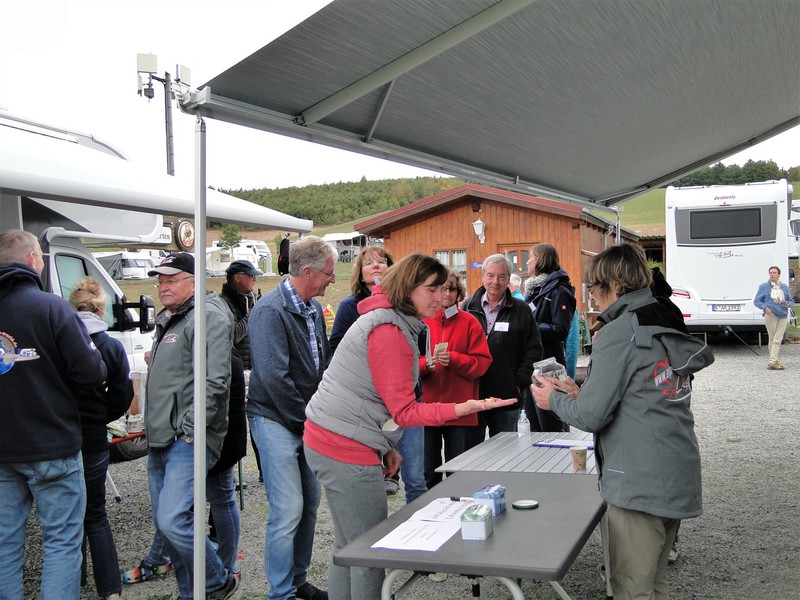 Micha hatte alle Hände voll zu tun die Neuankömmlinge zu begrüßen und zu Ihren Stellplätzen zu geleiten. Die Begrüßungen unter den Mitgliedern erfolgten schnell und