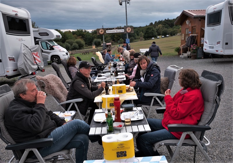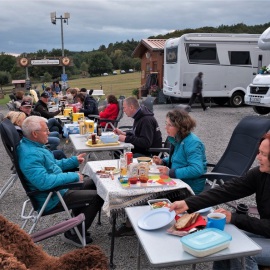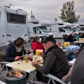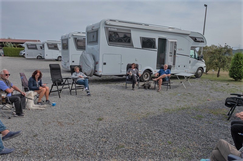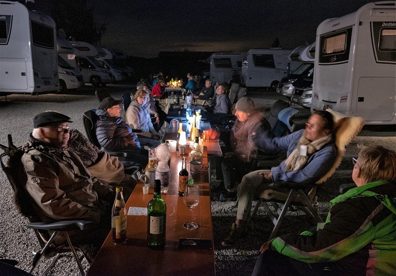 Nachdem die Mobile aufgebaut waren, bildete sich kurzfristig ein gemütliches Beisammensein an unserem Mobil.
