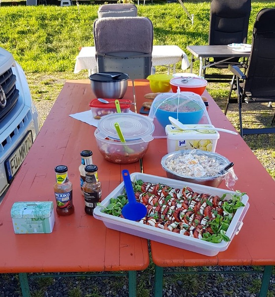 am Abend bereiten wir unseren Grillabend vor und freuen uns auf das leckere Salatbuffet.